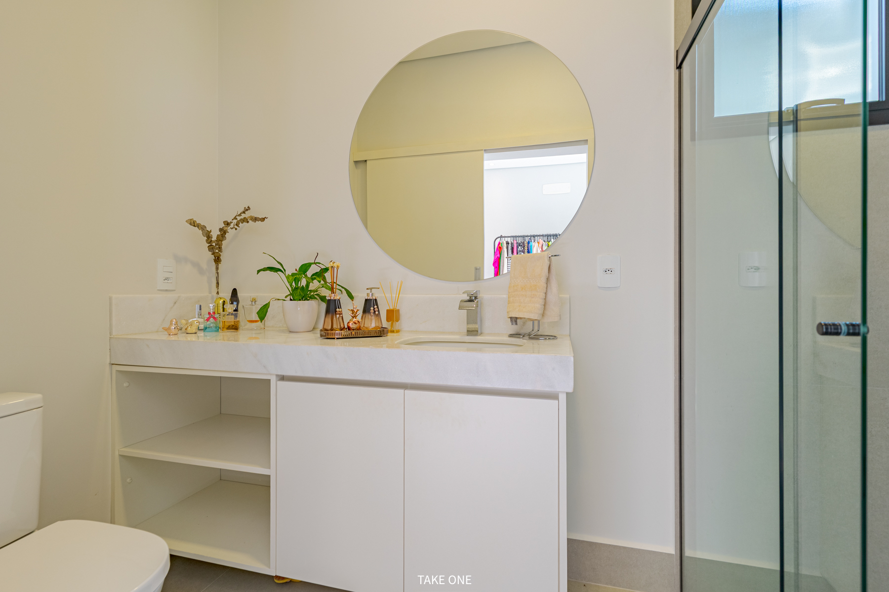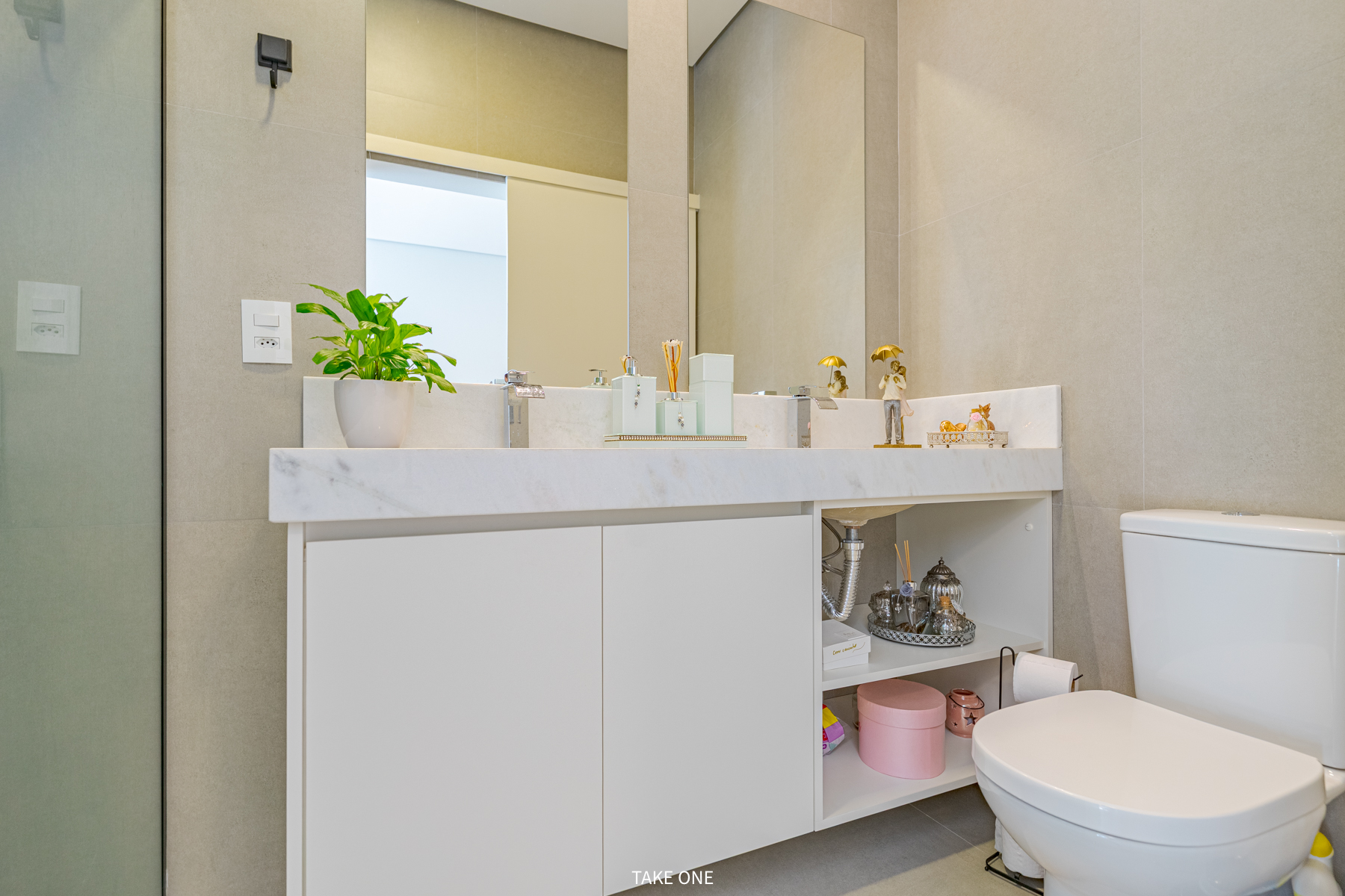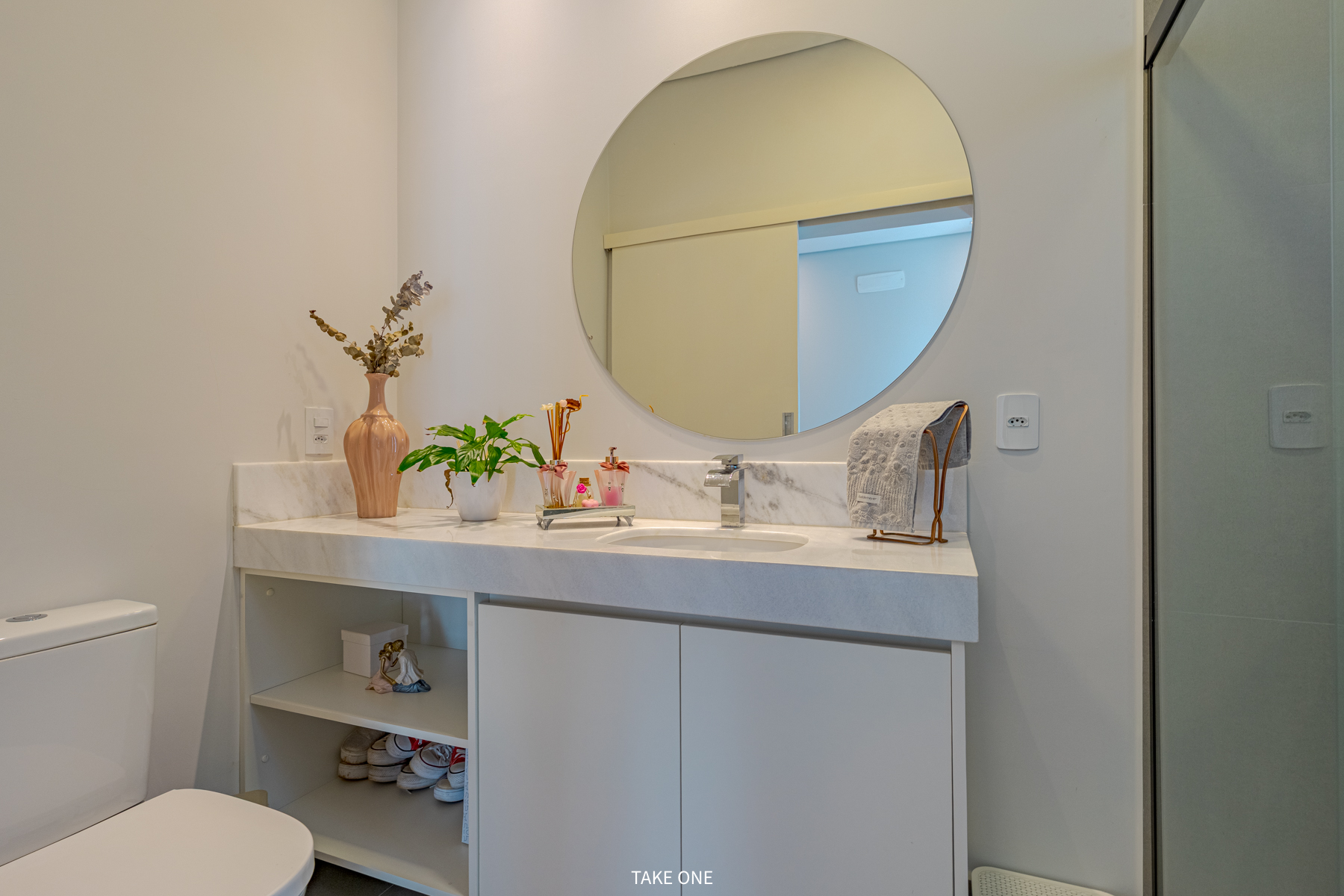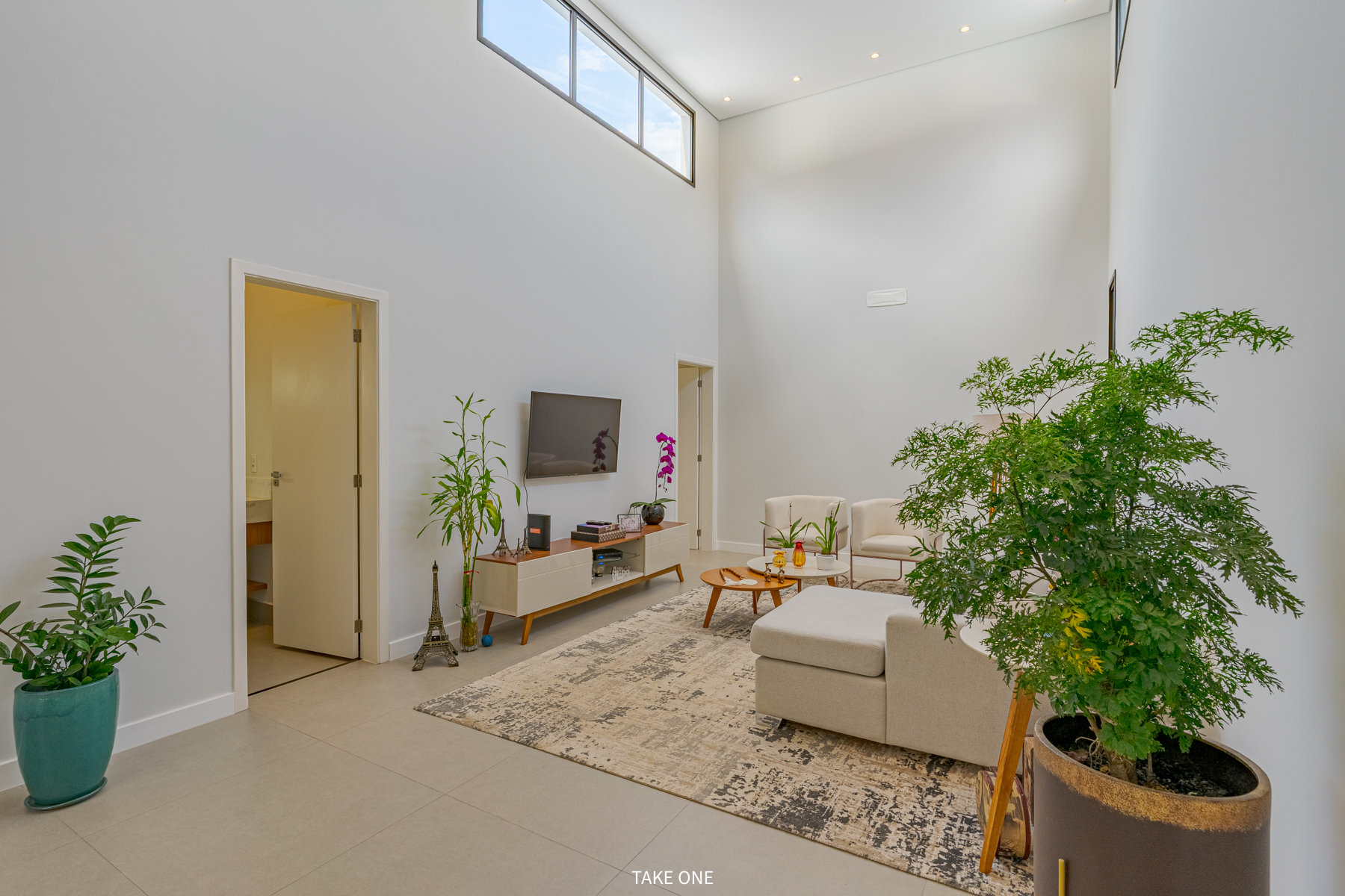 Com distribuição inteligente e sob medida, o projeto é minimalista, arejado, iluminado por luz natural e de fácil manutenção. Os ambientes são integrados: salas, cozinha e área de lazer se conectam de forma harmoniosa.